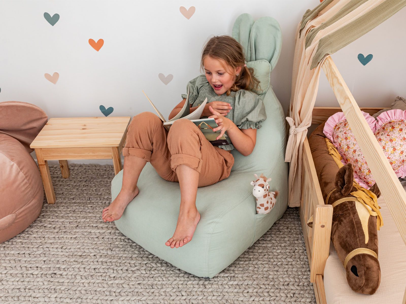 Este mullido puff de gran tamaño con forma de conejito es un fantástico complemento para cualquier espacio infantil. Es perfecto no sólo para los momentos de juego, sino también para los descansos tranquilos y acogedores. Ya sea a la hora del cuento, del juego o simplemente para relajarse, este puff es un lugar cómodo para niños de todas las edades, ¡e incluso para los mayores!
